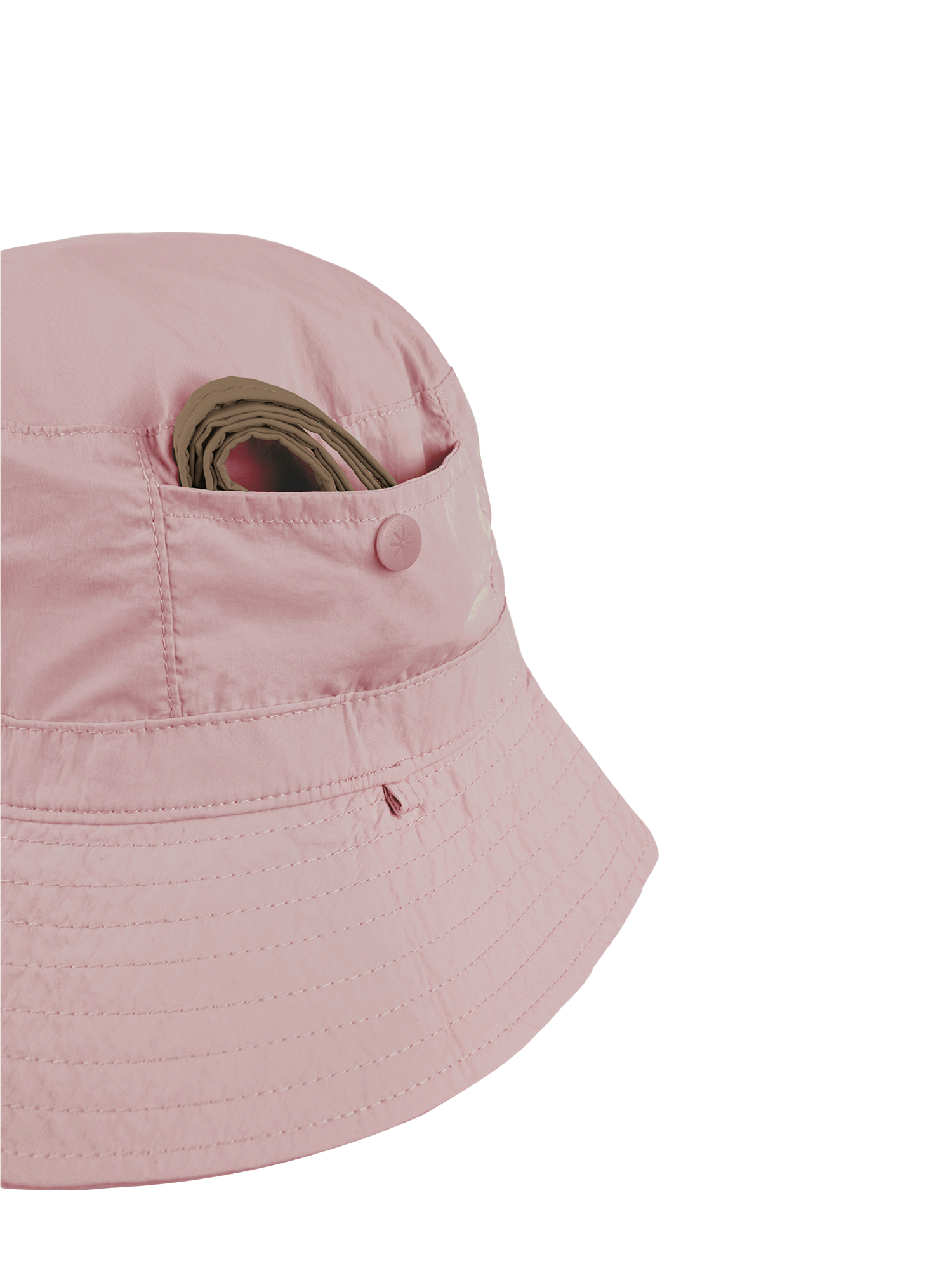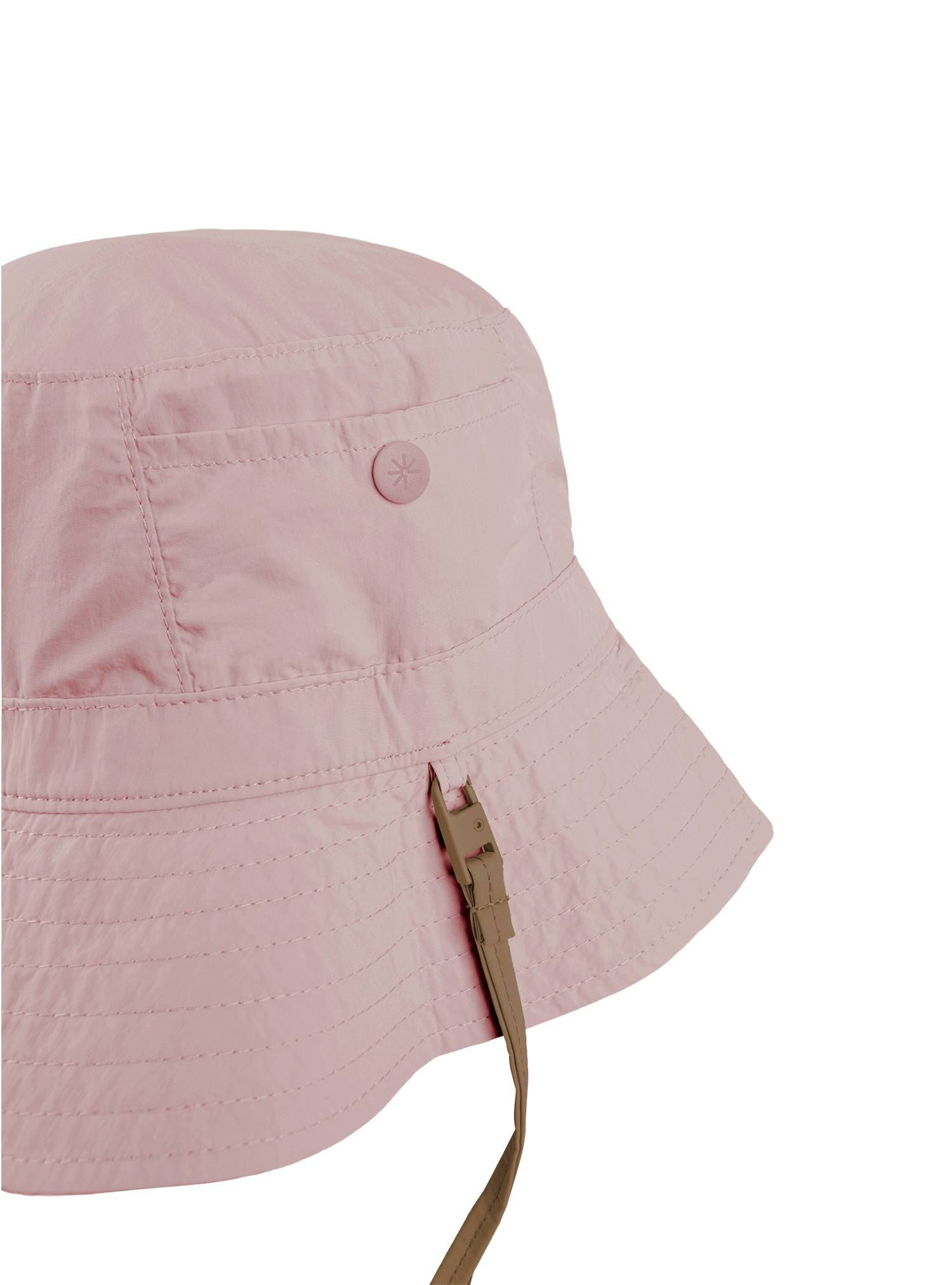 The Reversible Bucket Hat is lightweight and water-resistant, now with a sturdier brim. Flip to your preferred side and attach the detachable, adjustable strap, or tuck the strap into the hidden pocket.