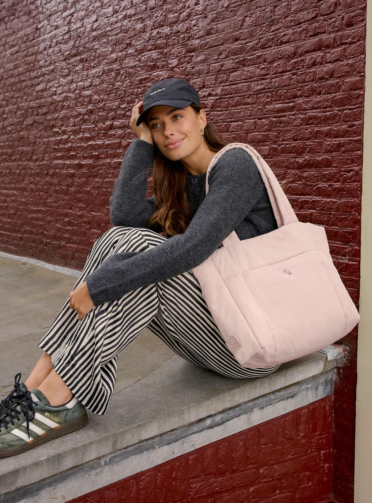 • Elevated aesthetic featuring a silver emblem and an understated embroidered label
