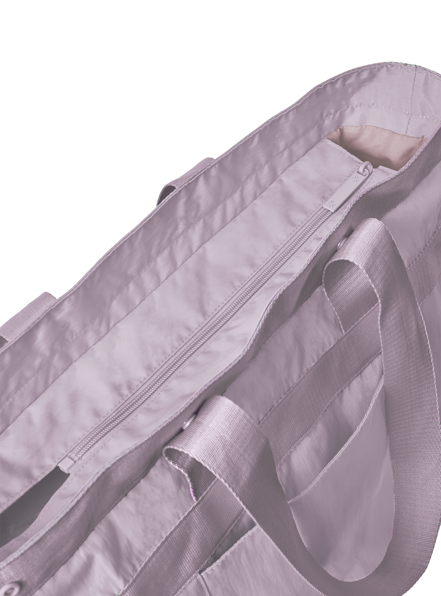 Note: Due to the multi-configuration of the Multi-Way Tote, the zip closure is designed to start slightly forward so you can continue to configure your Multi-Way Tote effectively while enjoying a closure to keep your belongings in.