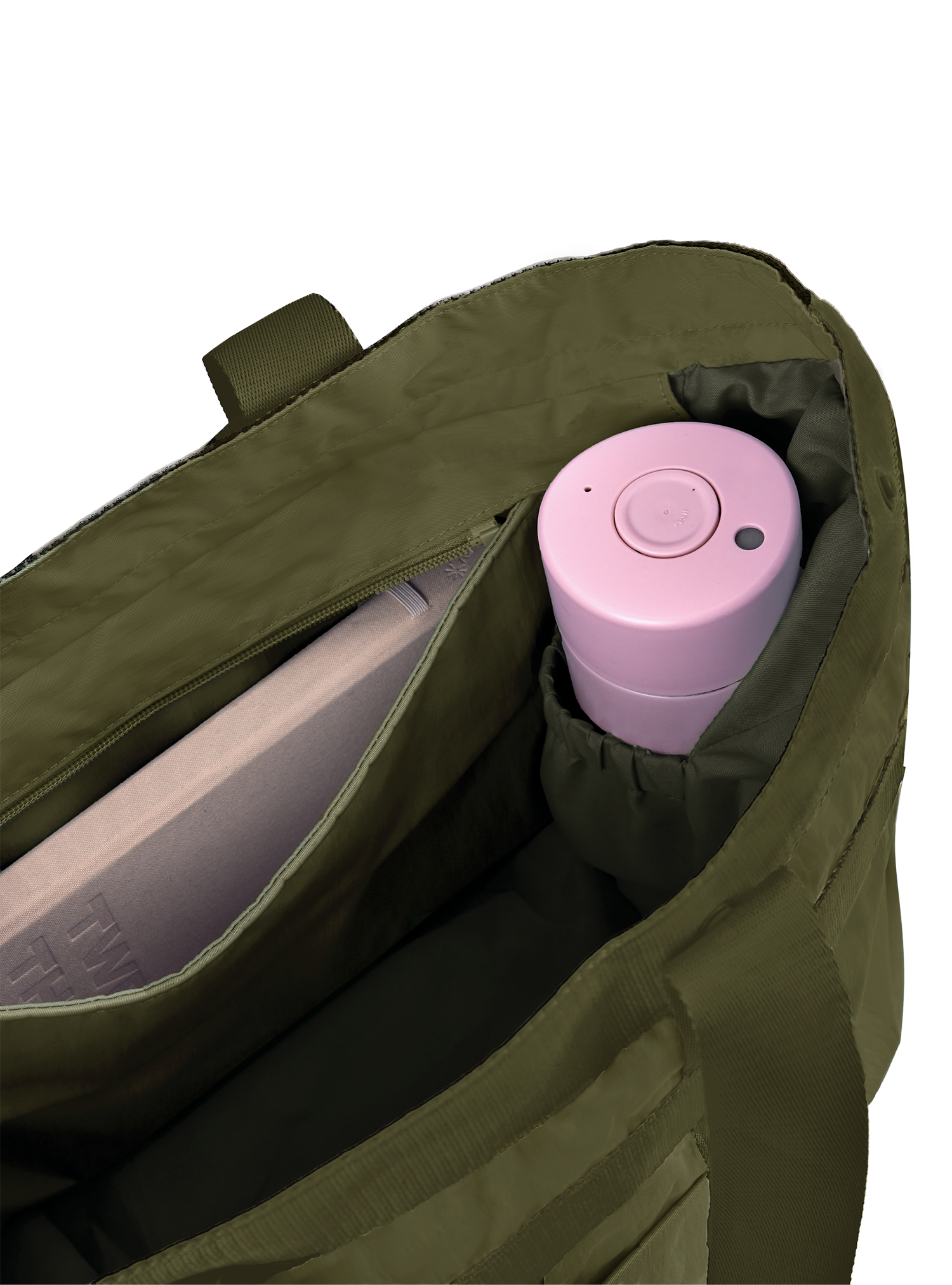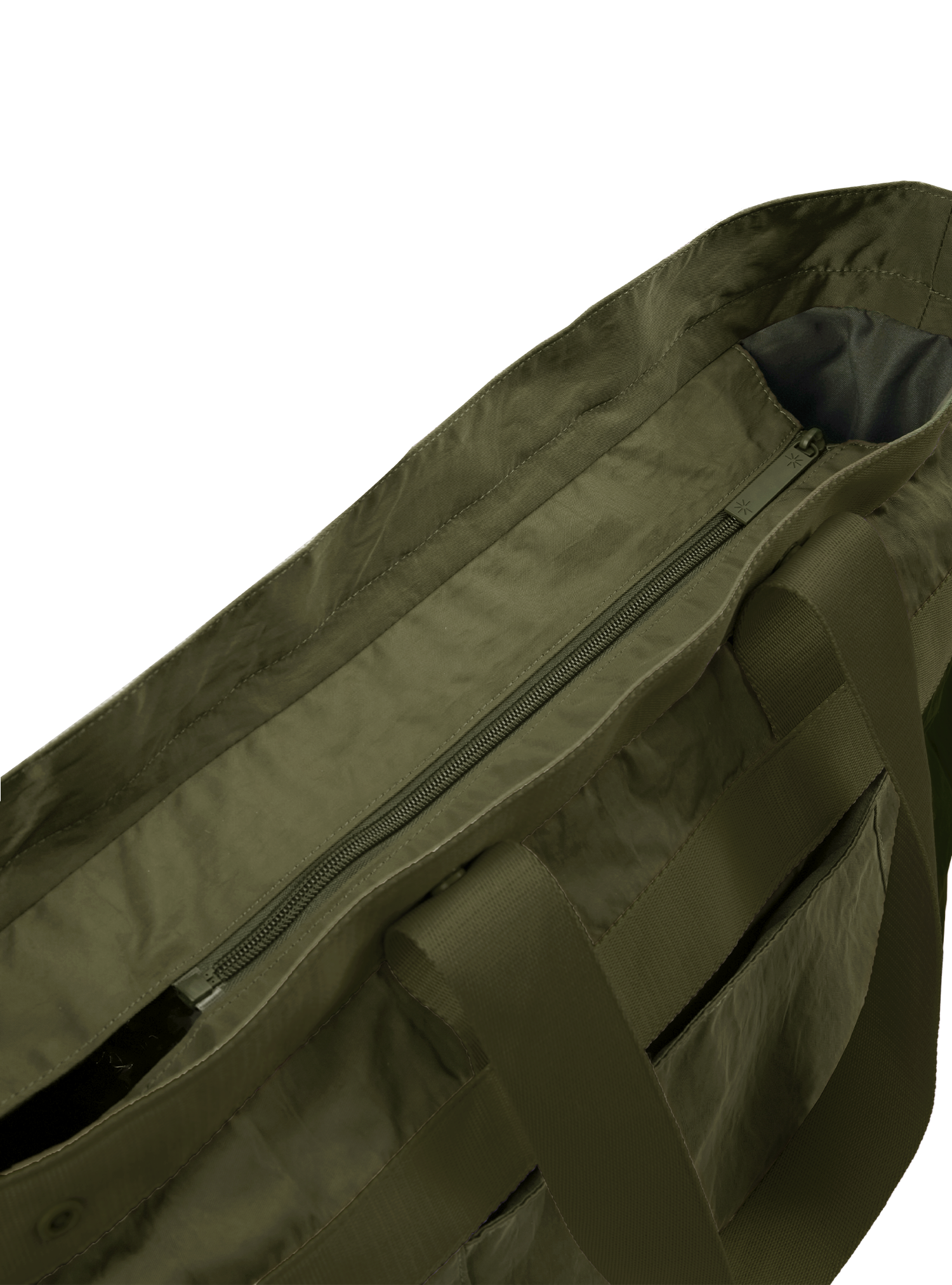 Note: Due to the multi-configuration of the Multi-Way Tote, the zip closure is designed to start slightly forward so you can continue to configure your Multi-Way Tote effectively while enjoying a closure to keep your belongings in.