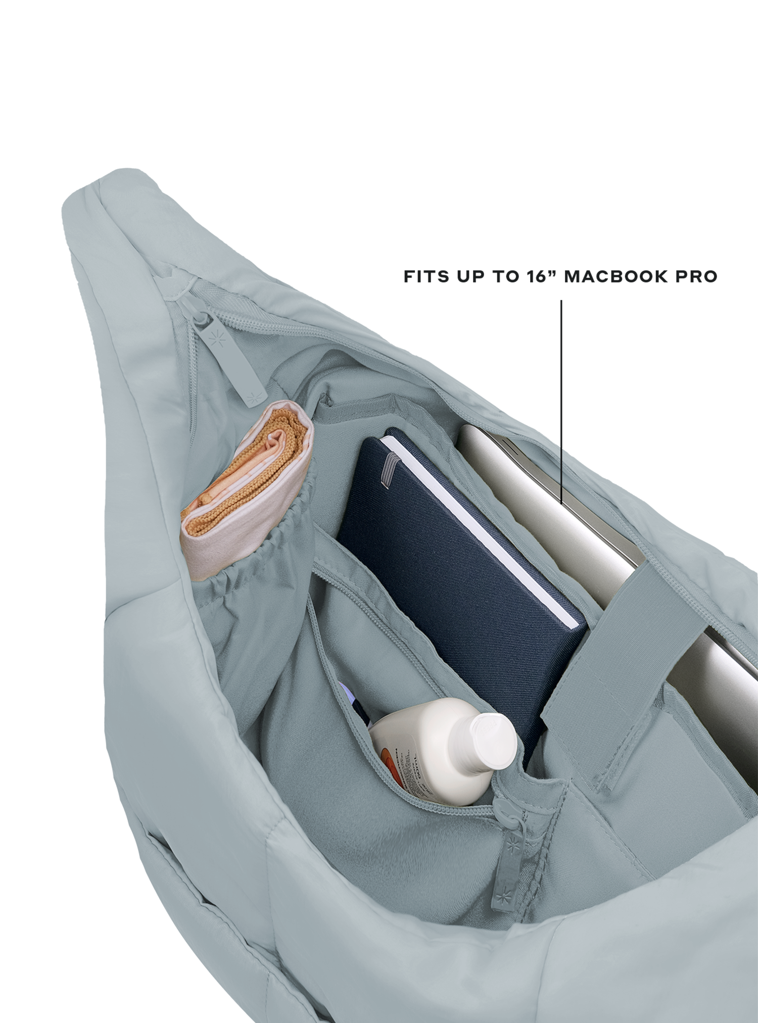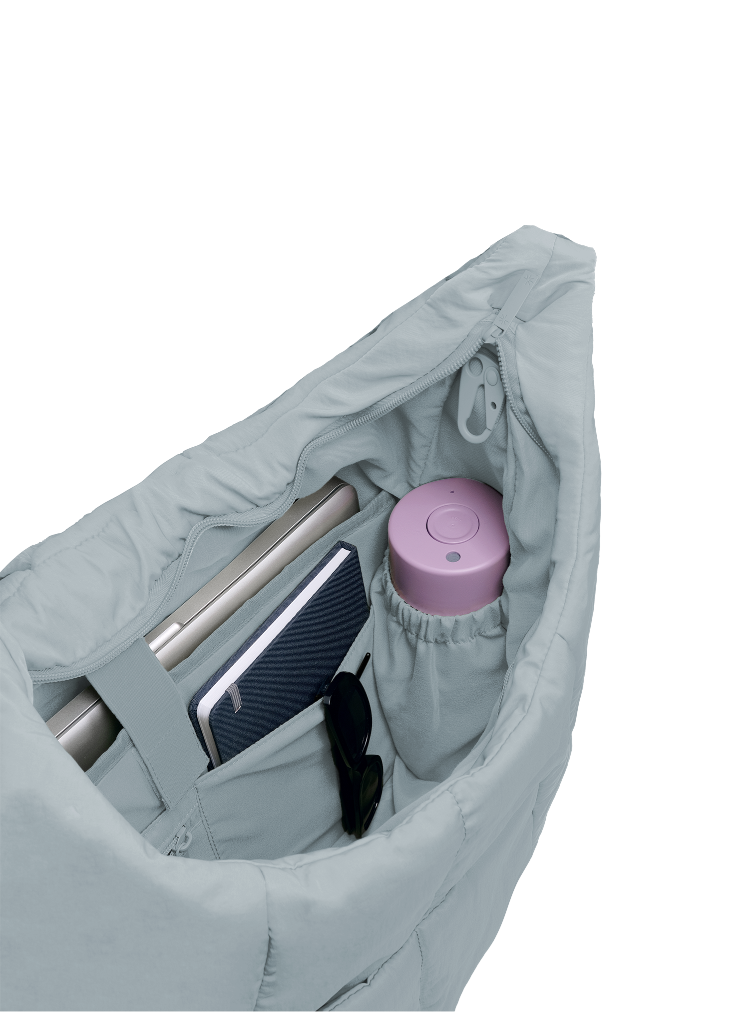 The Puffer Carryall is your do-it-all oversized bag – from gym to work. It features an adjustable strap, clip-on matching drawstring pouch, multiple compartments, a laptop slot, and a bottle holder.