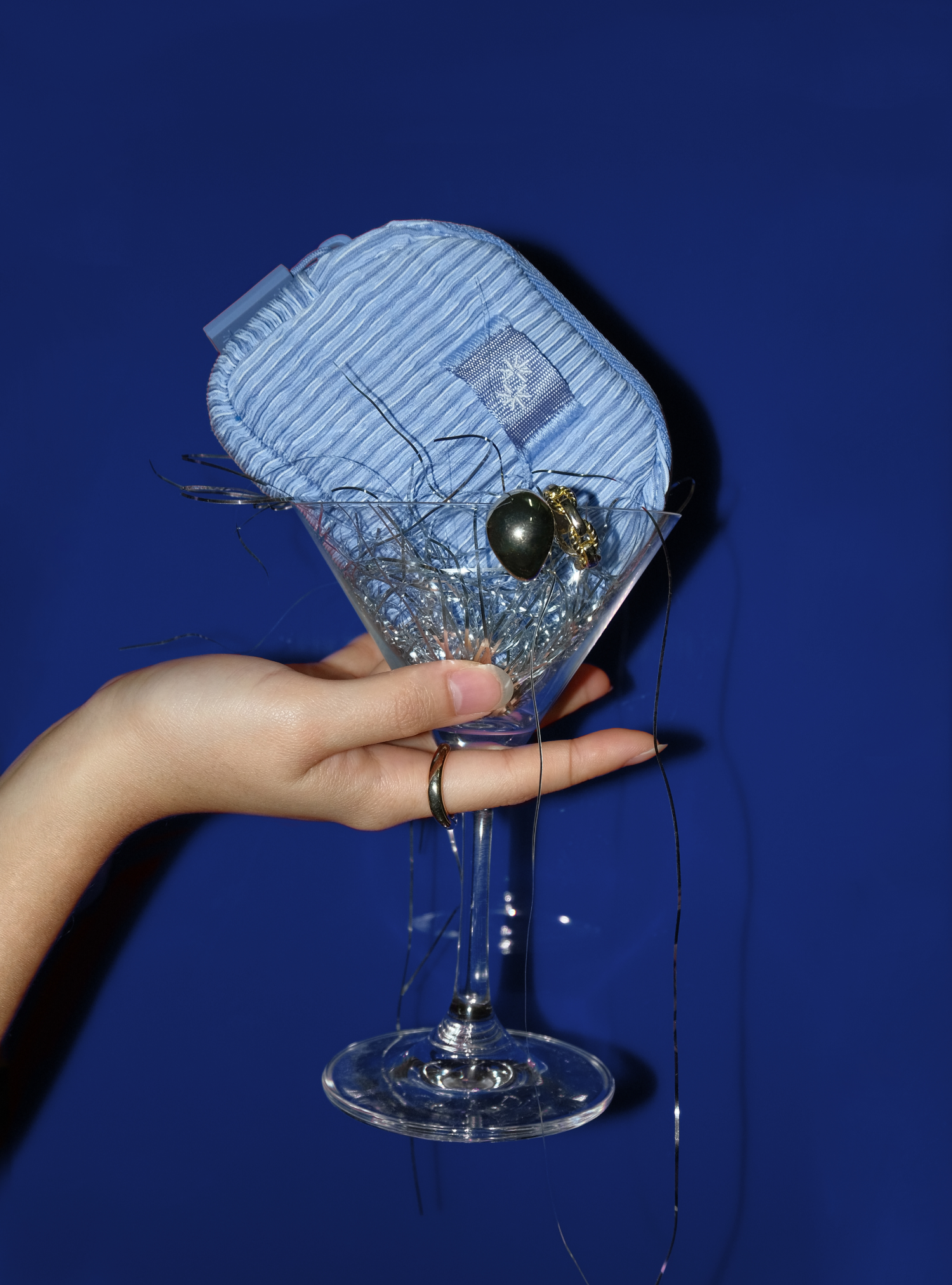 • Made with a custom crinkled polyester fabric that adds a textural depth