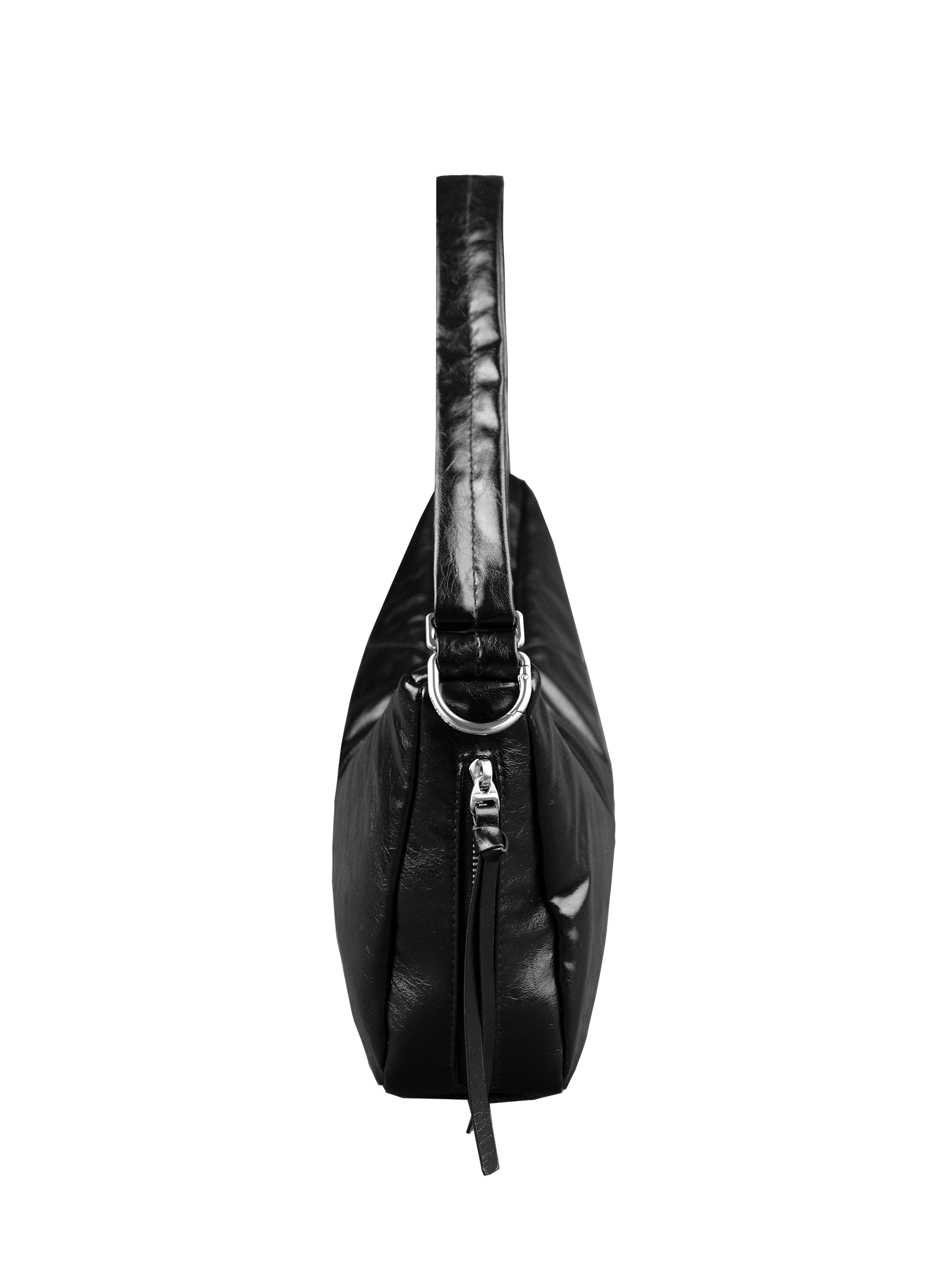 Inspired by sculptural forms, The Vessel combines design and function with an elongated V-shaped silhouette, built-in charm clip, side pockets, roomy interior, and adjustable strap for versatile everyday wear.